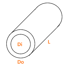 공식: 외경원의 면적 - 내경원의 면적 x 길이로 구할 수 있다