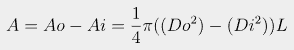공식: A= 1/4π((Do^2)-(Di^2))L