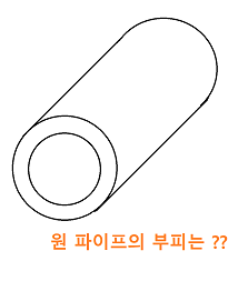 외경원의 면적 - 내경원의 면적 x 길이로 원 파이프의 부피 구하는 계산식 만들기