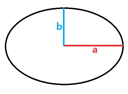 예시: 타원의 긴 반지름a =5, 짧은 반지름b=3 일때 넓이를 구한다면,