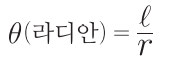예시: 반지름 r=5, 호의 길이 l=15 일때 중심각을 구한다면,