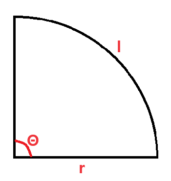 반지름 r=5, 호의 길이 l=15 부채꼴의 중심각을 구하는 계산식 만들기