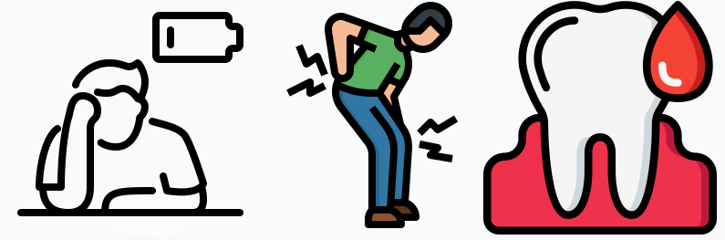 비타민 C 결핍의 증상에는 피로감, 근육 통증, 피부 손상, 출혈 경향, 잇몸출혈, 등이 포함될 수 있습니다.