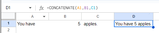 C1 셀에 " apples."이라는 텍스트를 입력합니다.